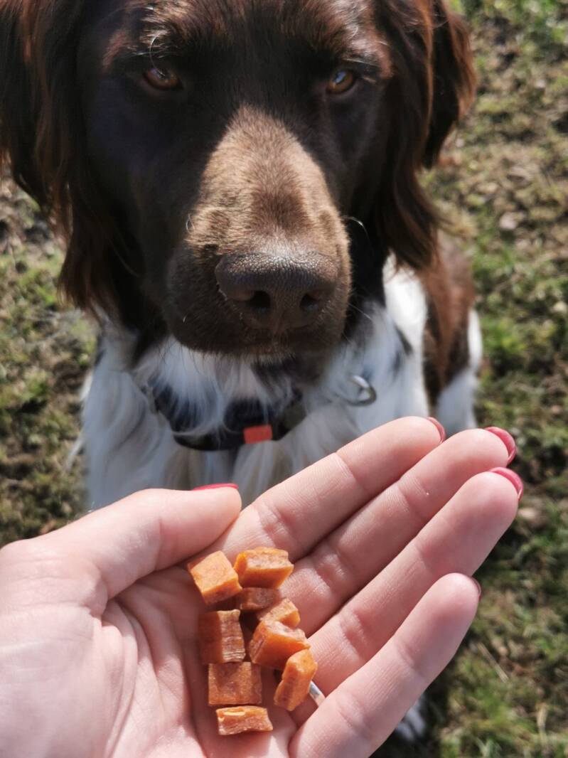 Deze zachte filet trainers zijn super lekker. Ze zijn ook niet zo groot, dus hap, slik, weg en weer door met de volgende oefening!