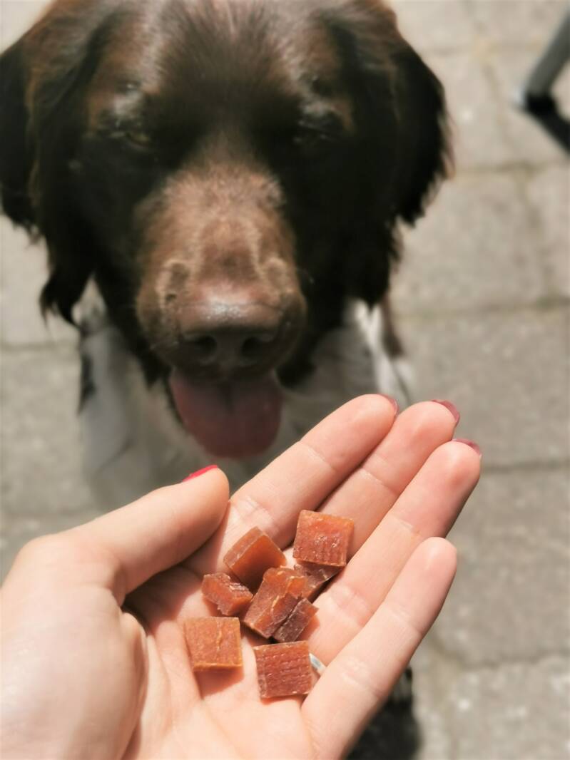 Deze zachte filet trainers zijn super lekker. Ze zijn ook niet zo groot, dus hap, slik, weg en weer door met de volgende oefening!