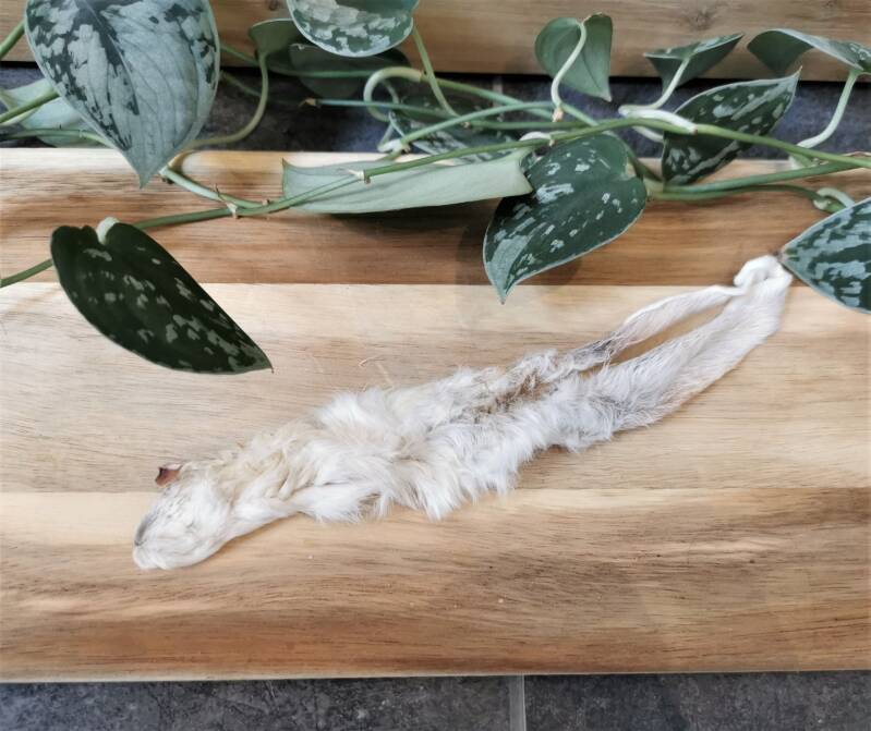 Deze gedroogde konijnenoren met haar zijn geen hele harde snack en daarom geschikt voor alle hondenvriendjes. Het is écht heel lekker! Dat haar erop ziet er natuurlijk een beetje gek uit, maar het blijkt heel goed te zijn voor onze darmen.
