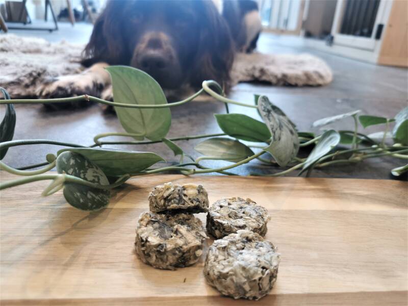 Hmmmm weer zo'n lekker tussendoortje. Deze krokante koekjes van gedroogde kabeljauw zijn echt genieten! Geschikt voor al mijn hondenvriendjes, van groot tot klein.