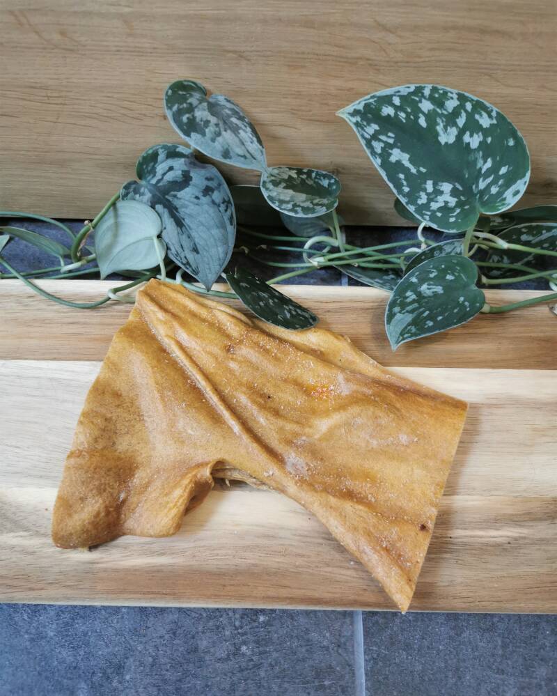 De kophuidplaat zorgt voor lang kauwplezier, voor mijn middelgrote tot grote hondenvriendjes! Het is een natuurlijk product, dus de vorm en grootte kan per plaat afwijken. De platen zijn in verschillende gewichtsklasse te verkrijgen.